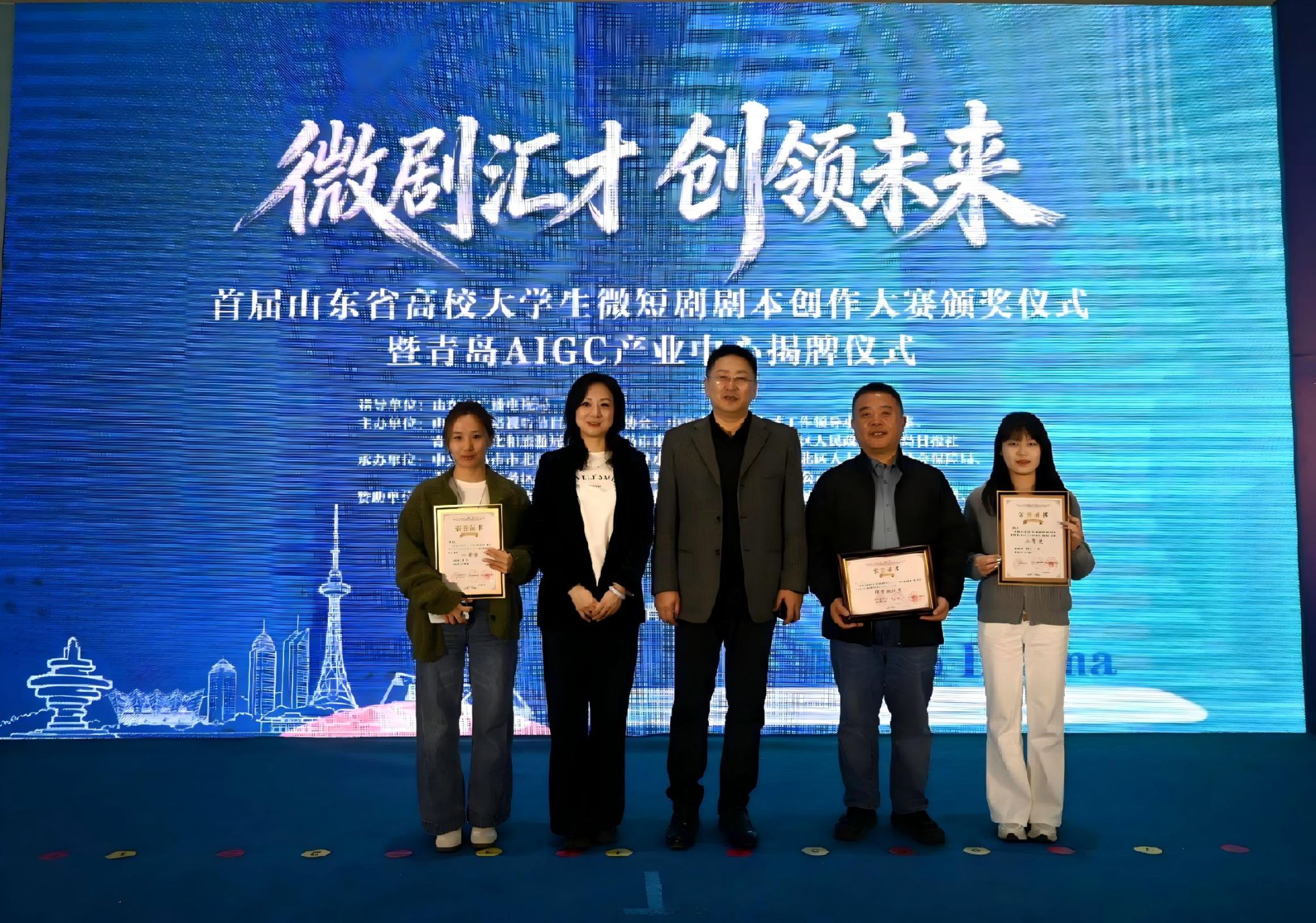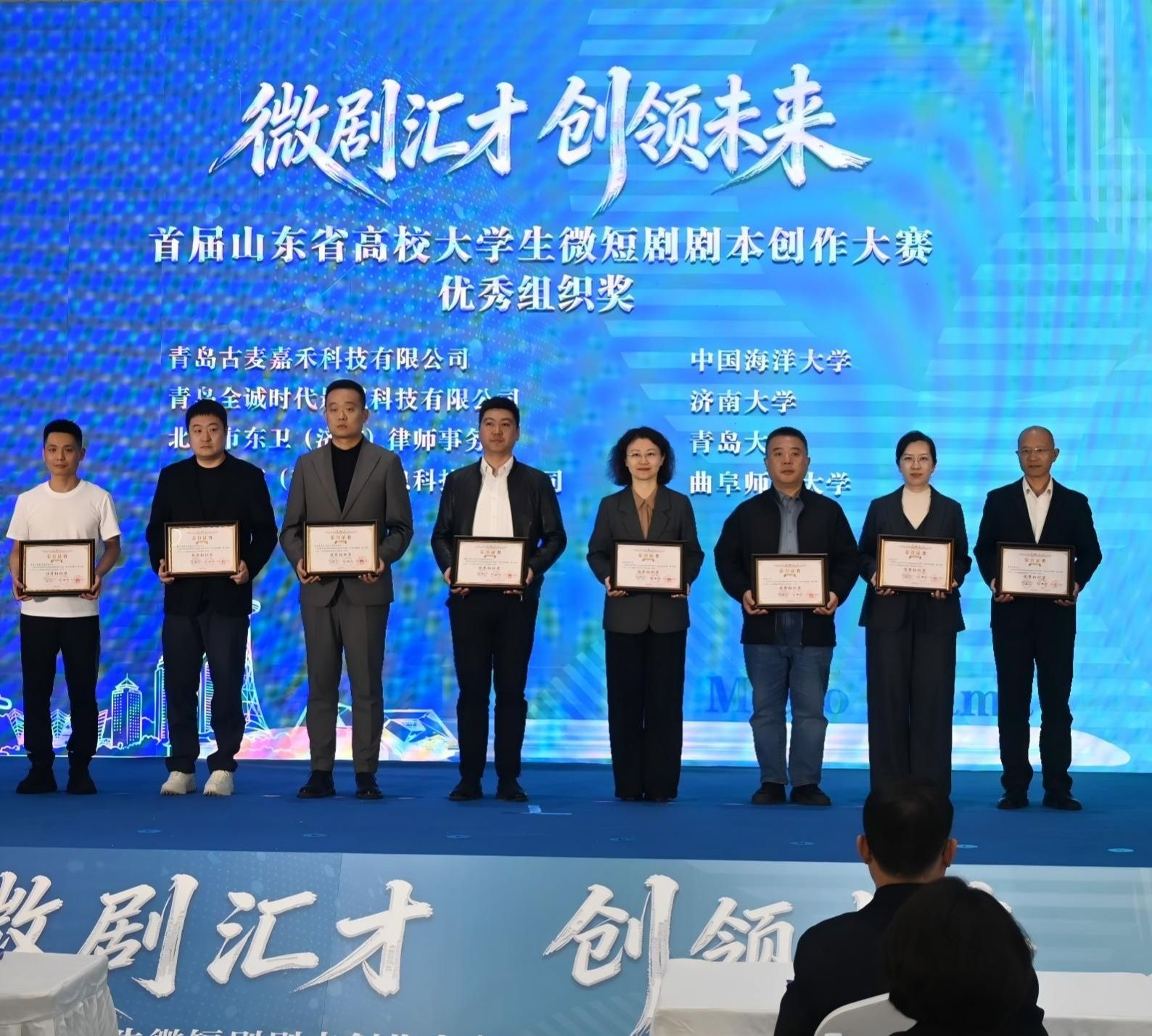 3月27日,“微剧汇才 创领未来”首届山东省高校大学生微短剧剧本创作大赛颁奖仪式在青岛隆重举行,济南大学荣获优秀组织奖,银河娱乐官网