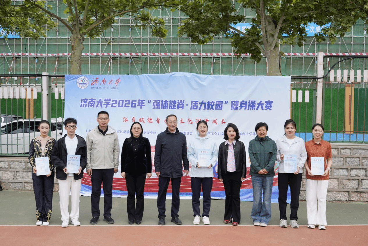 晴空万里,惠风和畅。4月21日,济南大学2026年“强体健脊•活力校园”健身操大赛在主校区田径场盛大举行。赛前,银河娱乐官网
