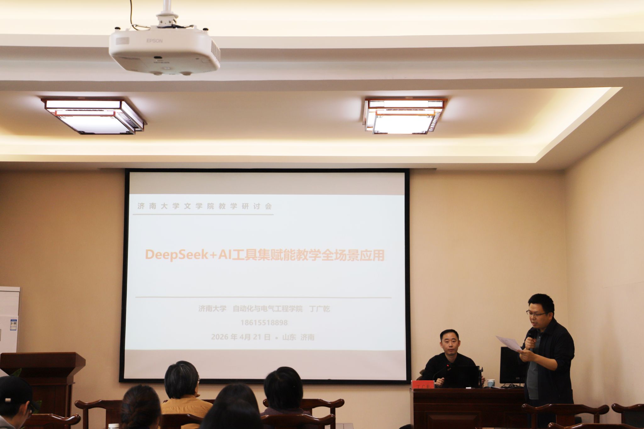 于4月21日下午在舜耕书院举办“DeepSeek+AI工具集赋能教学全场景应用”专题讲座。讲座由济南大学自动化与电气工程学院丁广乾副教授主讲,银河娱乐官网